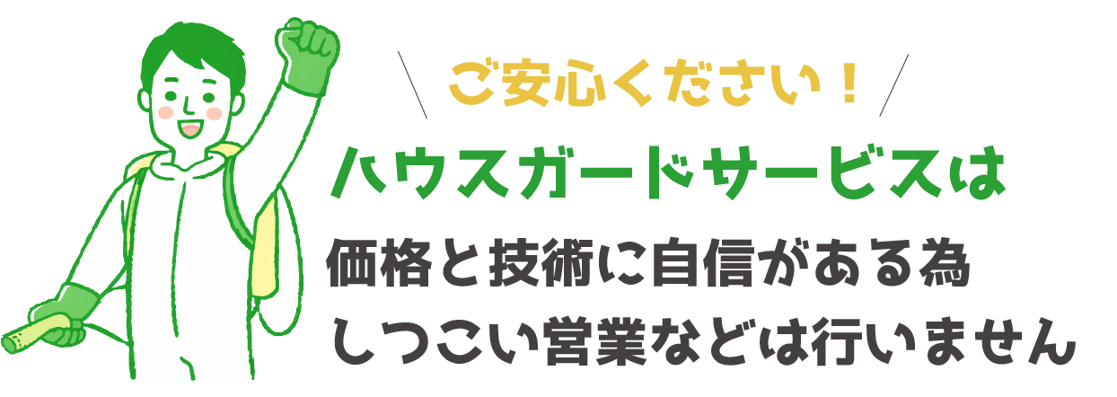 広島市でシロアリ駆除をご検討中の方は、ハウスガードサービスにおまかせください。地域密着での丁寧な対応と、確かな技術で大切なお住まいをお守りします。無料調査・無料見積にも対応しており、しつこい営業は一切ありません。まずはお気軽にご相談ください。
